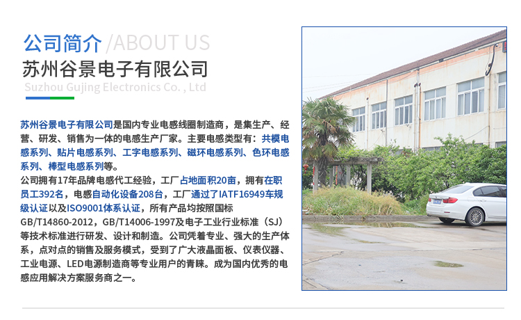 蘇州谷景電子有限公司,一家從事貼片電感,色環電感,工字電感,磁環電感,線圈電感,貼片磁珠,共模濾波器,定制電感服務的電感廠家,電感生產商。