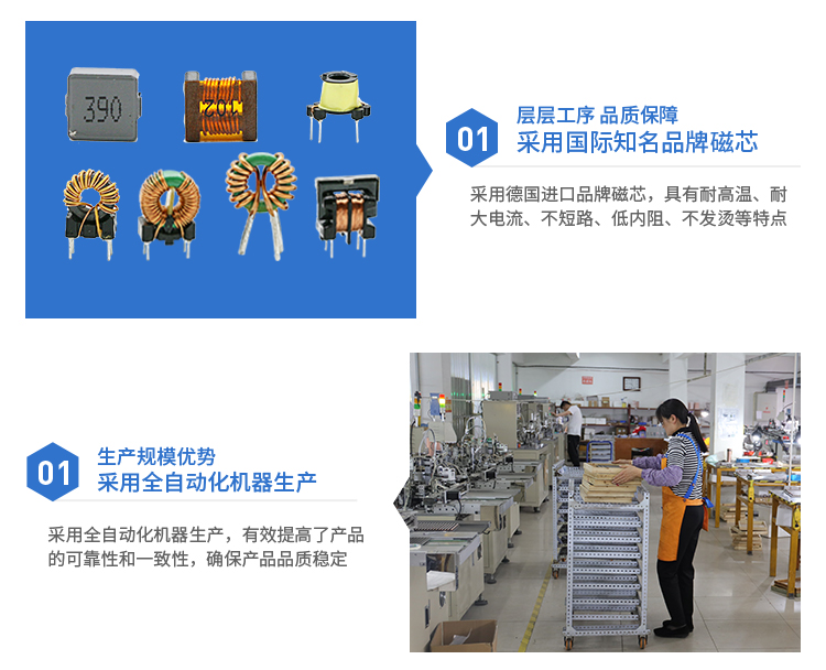 3. 可以串聯或并聯連接,提供較寬的電感值和較大的額定電流值;